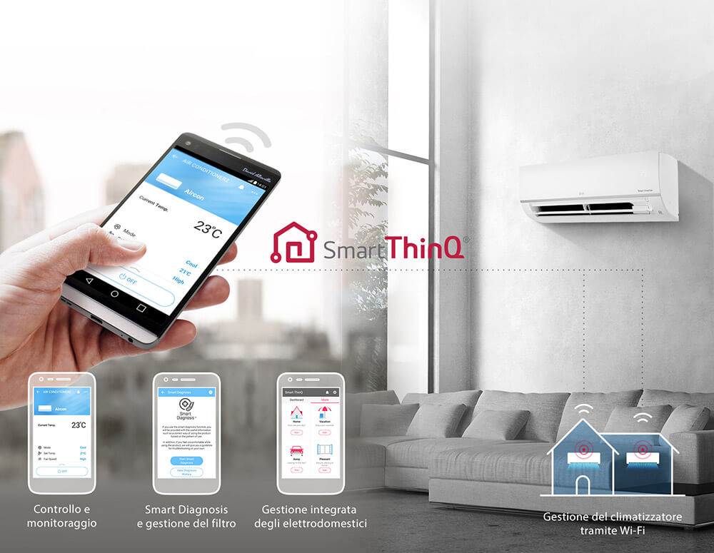 Con i riflettori sempre puntati sull’efficienza energetica, LG Smart ThinQ include anche la funzione di monitoraggio dei consumi, affinché l’utente possa visualizzare l’andamento settimanale e mensile e il tempo di funzionamento del climatizzatore. Grazie all’avanzata tecnologia LG Smart Inverter, sarà interessante vedere come i condizionatori LG operino con performance di alto livello e minimi consumi. Sfruttando, inoltre, Controllo Attivo della Capacità ed Energy Display sarà sempre possibile godere dei benefici di una temperatura sempre ottimale e ridurre contemporaneamente i consumi elettrici, utilizzando la potenza domestica disponibile in maniera più consapevole, evitando fastidiosi distacchi del contatore.
